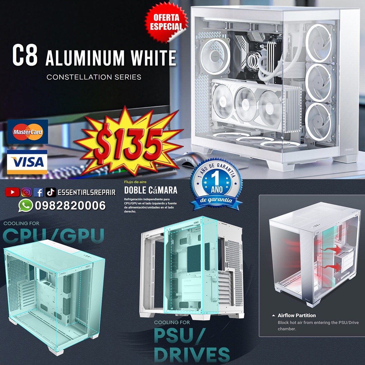 CASE ANTEC C8 ALUMINUM WHITE FULL TOWER CONSTELLATION SERIES