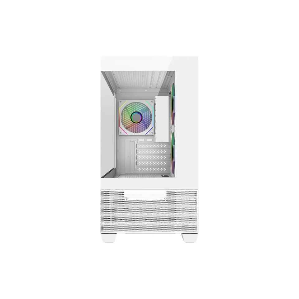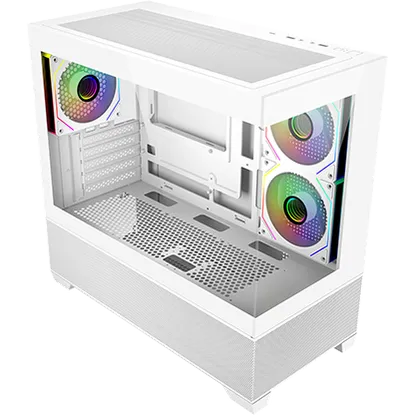 El Case Cooler Master Elite 490 White es la opción perfecta para quienes buscan un diseño elegante, luminoso y verdaderamente compacto. Su formato Mini Tower está optimizado de manera específica para placas base Micro-ATX y Mini-ITX, siendo la base ideal para armar un equipo impecable que no ocupe demasiado espacio. Su estética en color blanco se realza con paneles de vidrio templado tanto en el frontal como en el lateral. Para asegurar un excelente flujo de aire desde el primer encendido, incluye un ventilador trasero ARGB de 120 mm y dos ventiladores de 120 mm preinstalados en el panel lateral.