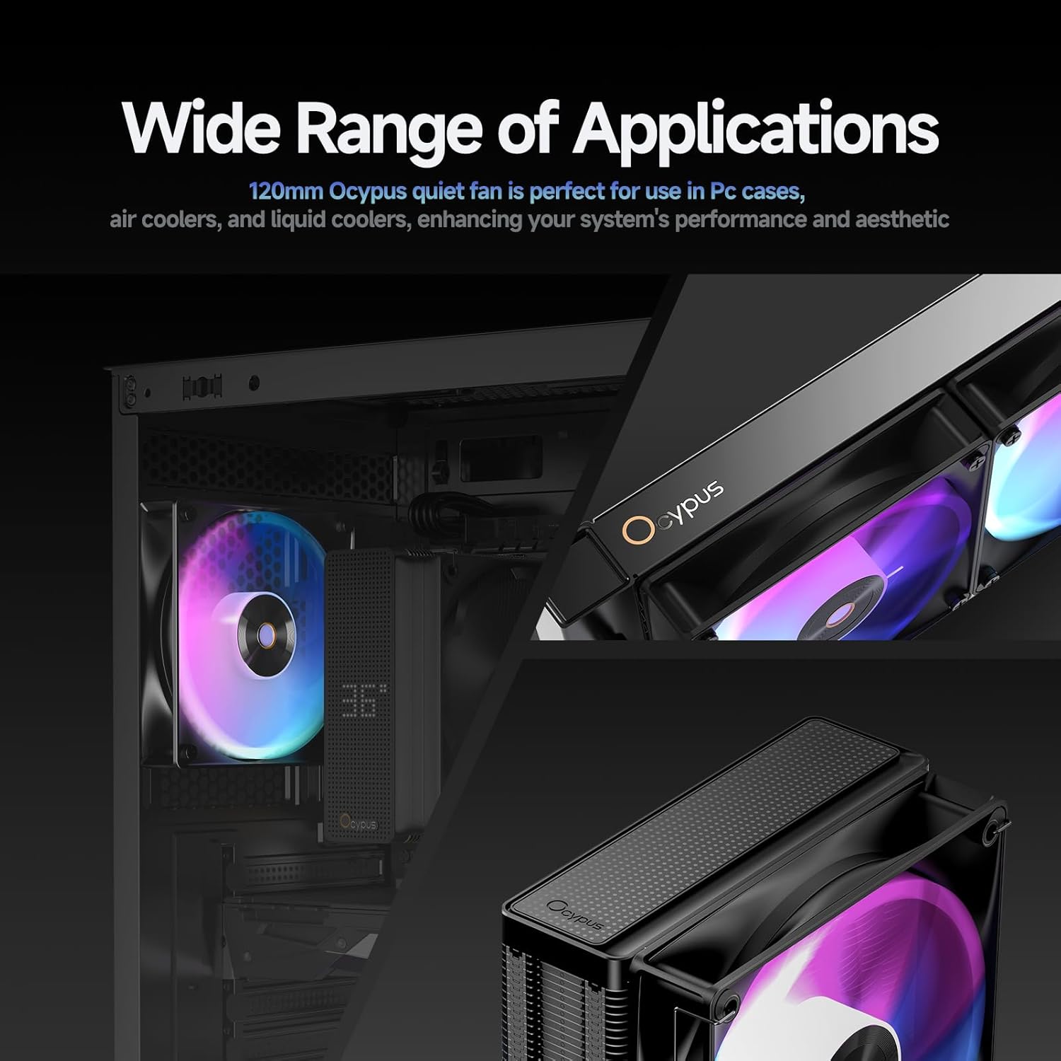 【Top Performance】Ocypus computer fans with new balance between performance and silence:Speed: 200-2000RPM±10%, Max Air Flow: 73CFM, Max Static Pressure: 4.3mm-H2O, Noise: ≤28dB(A) ±10%
