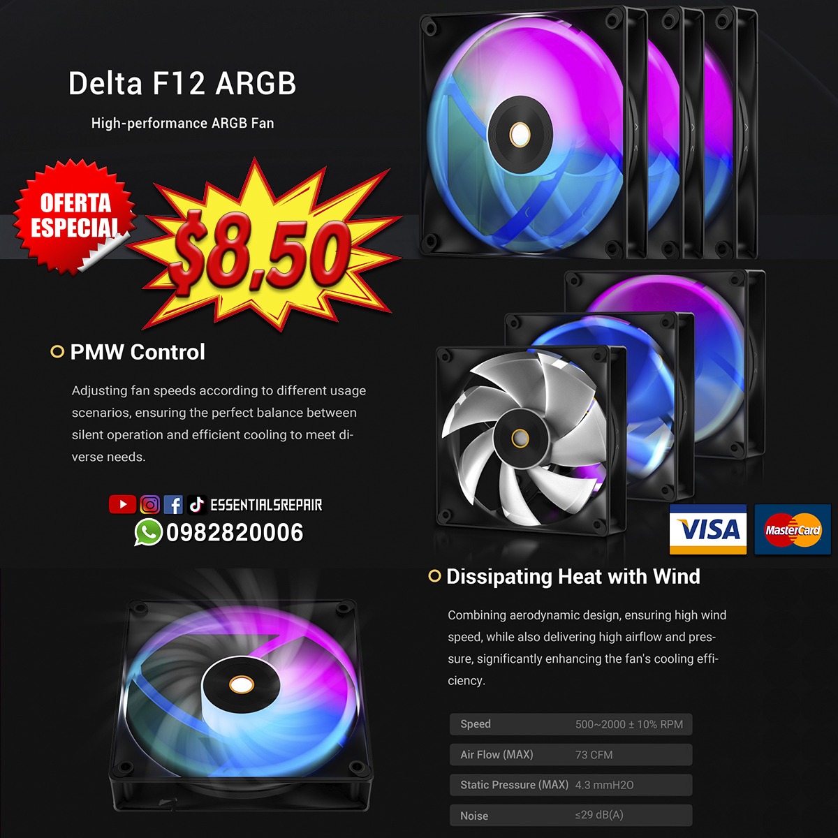 | Componentes incluidos | 1* Delta 120mm Case Fan, tornillo |