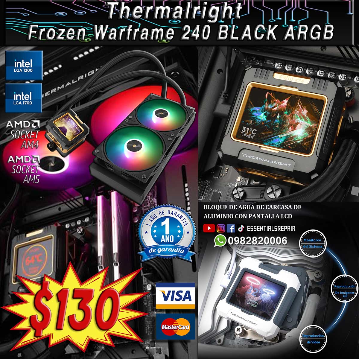REFRIGERACIÓN LIQUIDA THERMALRIGHT FROZEN WARFRAME 240 BLACK ARGB